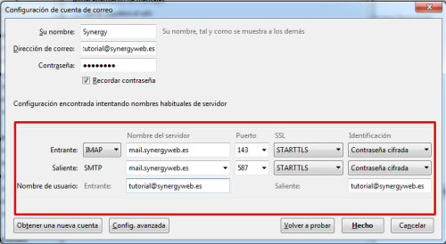 - Nota importante: Si no se acepta el certificado, será necesario reconfigurar la cuenta. El primer envío de un email, siempre será erróneo hasta que aceptemos el certificado es muy importante aceptarlo para poder trabajar.